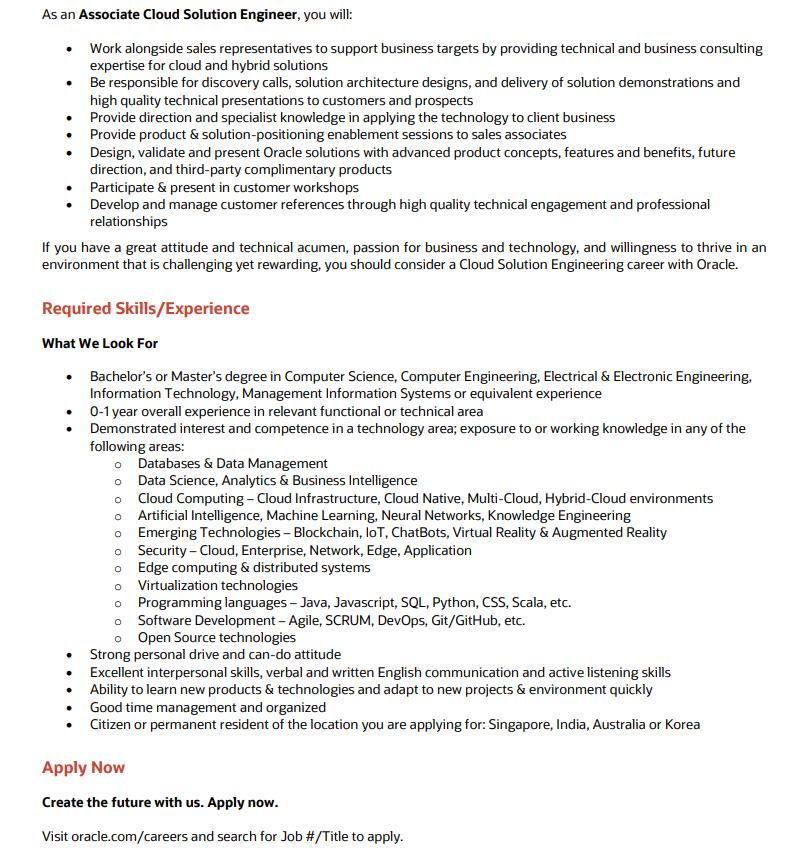 무려 글로벌 대기업 <오라클>인만큼 지원하는 것 자체만으로도 좋은 경험이 될 것 같았고,