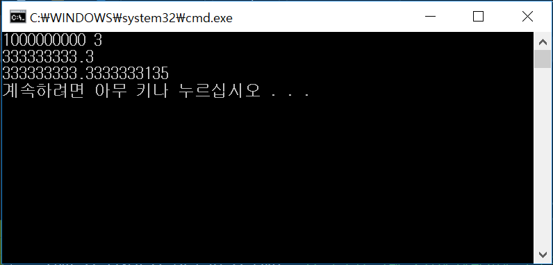 첫번째 cout은 10개의 유효숫자만을 출력하면 되기 때문에
