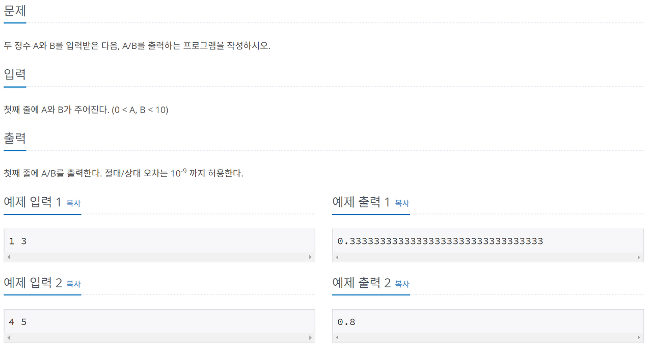 cout << (a / b) << endl; // 유효숫자 개수 결정