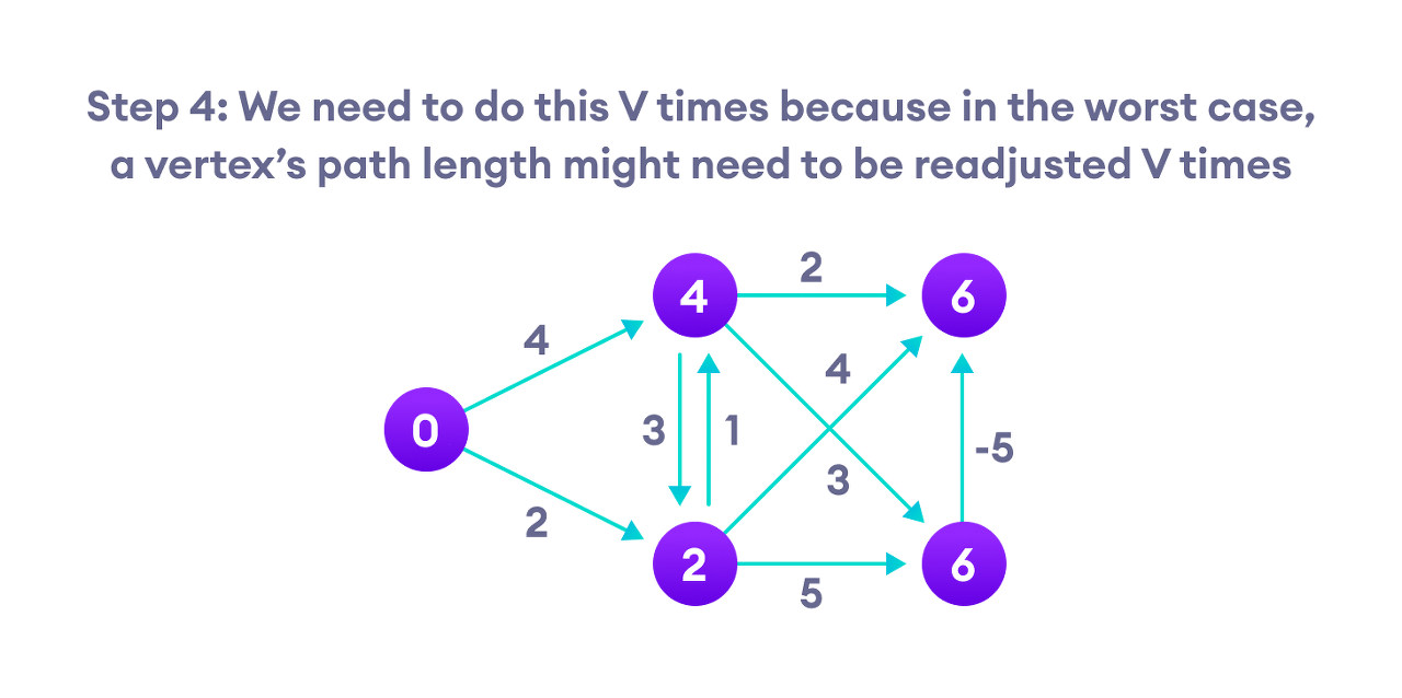 // Relax all edges |V| - 1 times. A simple