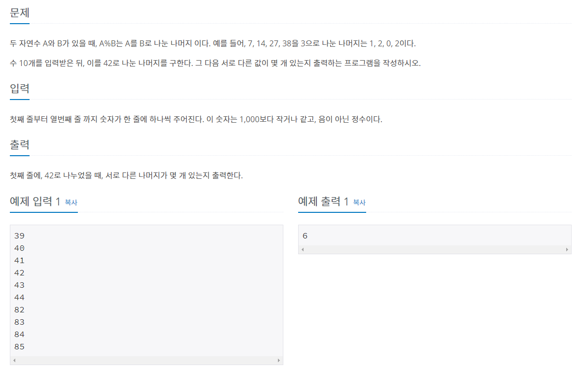 배열 re_arr 에 in_arr 의 원소들을 각각 42로 나눈 나머지를 차례대로 저장한다.