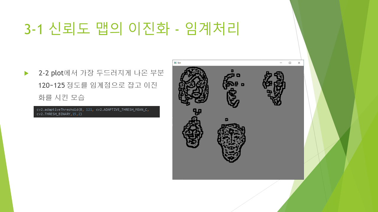 5. 신뢰도 맵에 대하여 오츄의 알고리즘을 적용하여 이진화하고 디스플레이해 봅시다.